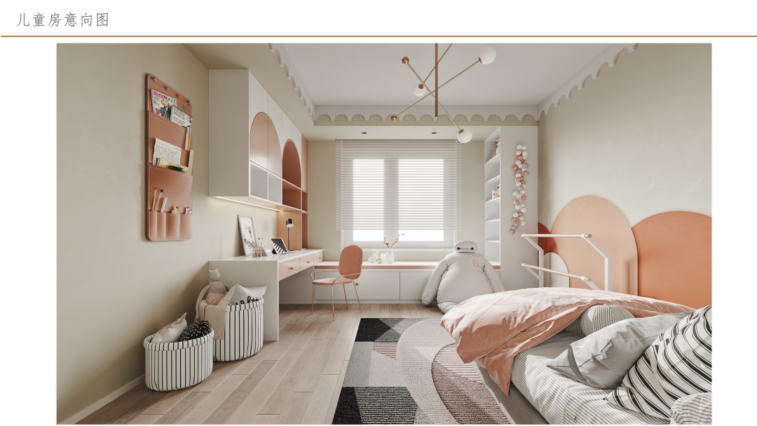 兒童房 主要需要滿足睡眠、收納、學(xué)習(xí)、互動這四個方面,一字型書桌+衣柜組合,衣柜和床頭柜轉(zhuǎn)角設(shè)計,滿足收納及學(xué)習(xí)需求。